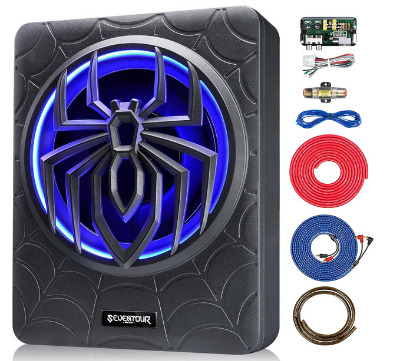 4. 10″ 1000W Slim Under Seat Powered Car Subwoofer with Blue LED Light