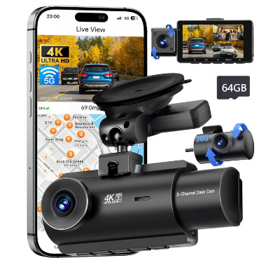 3. Triple-Channel 4K Dashboard Camera – Best Multi-Angle Coverage